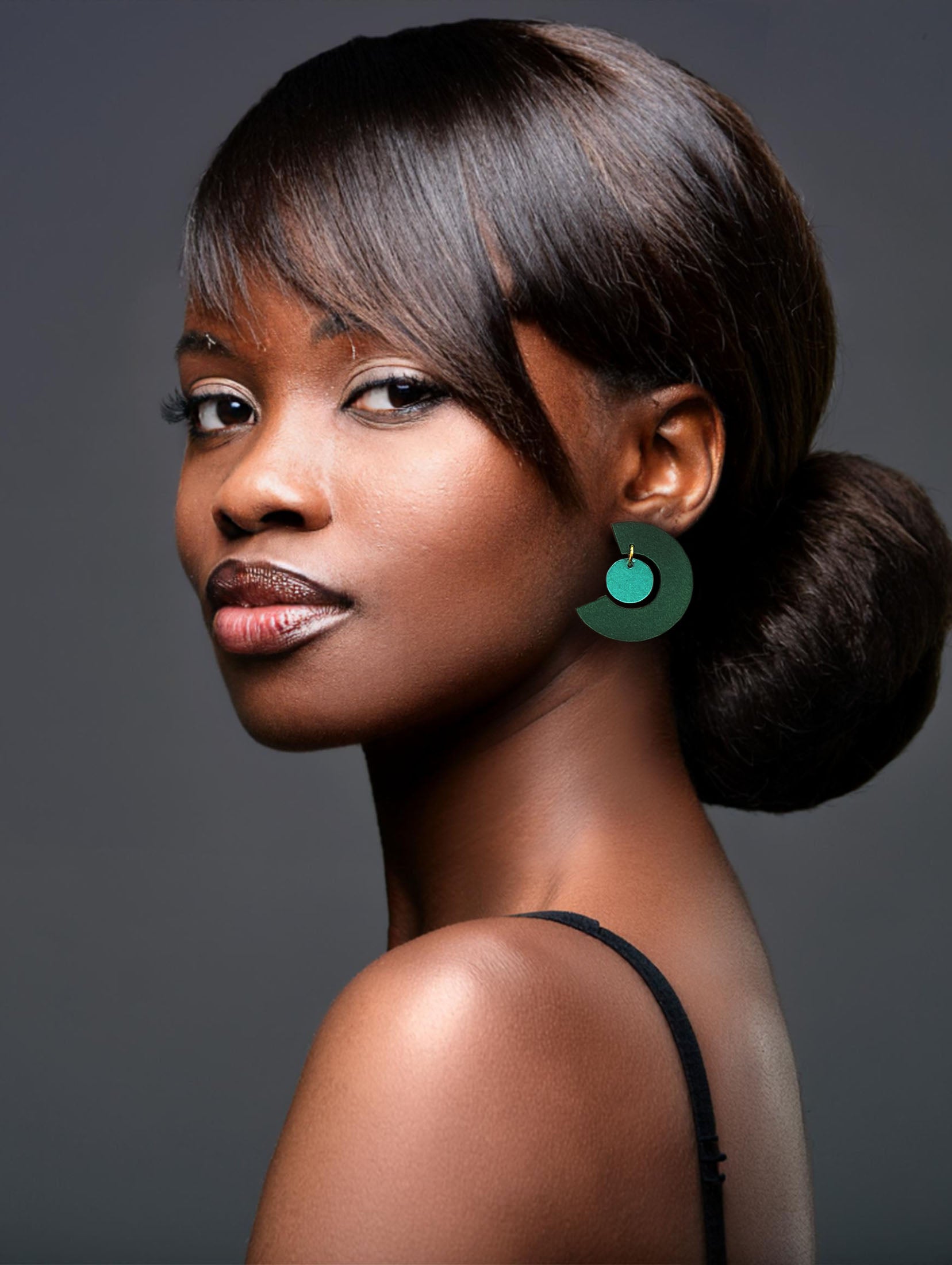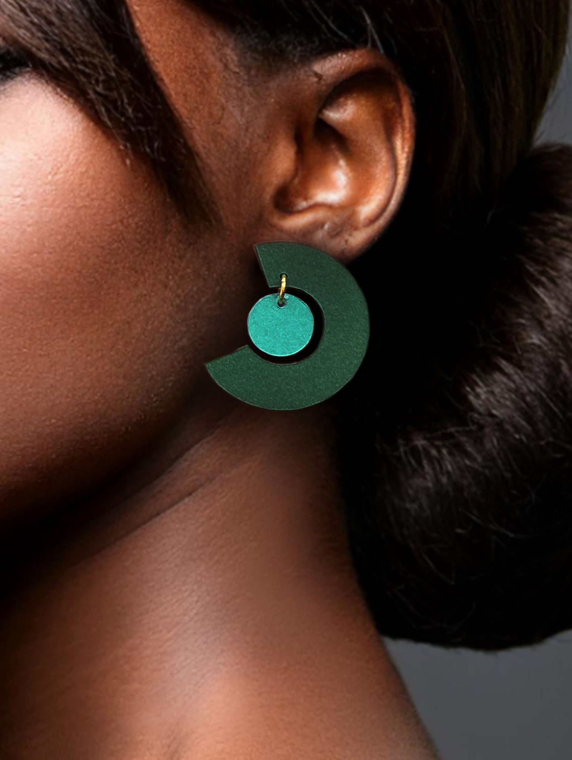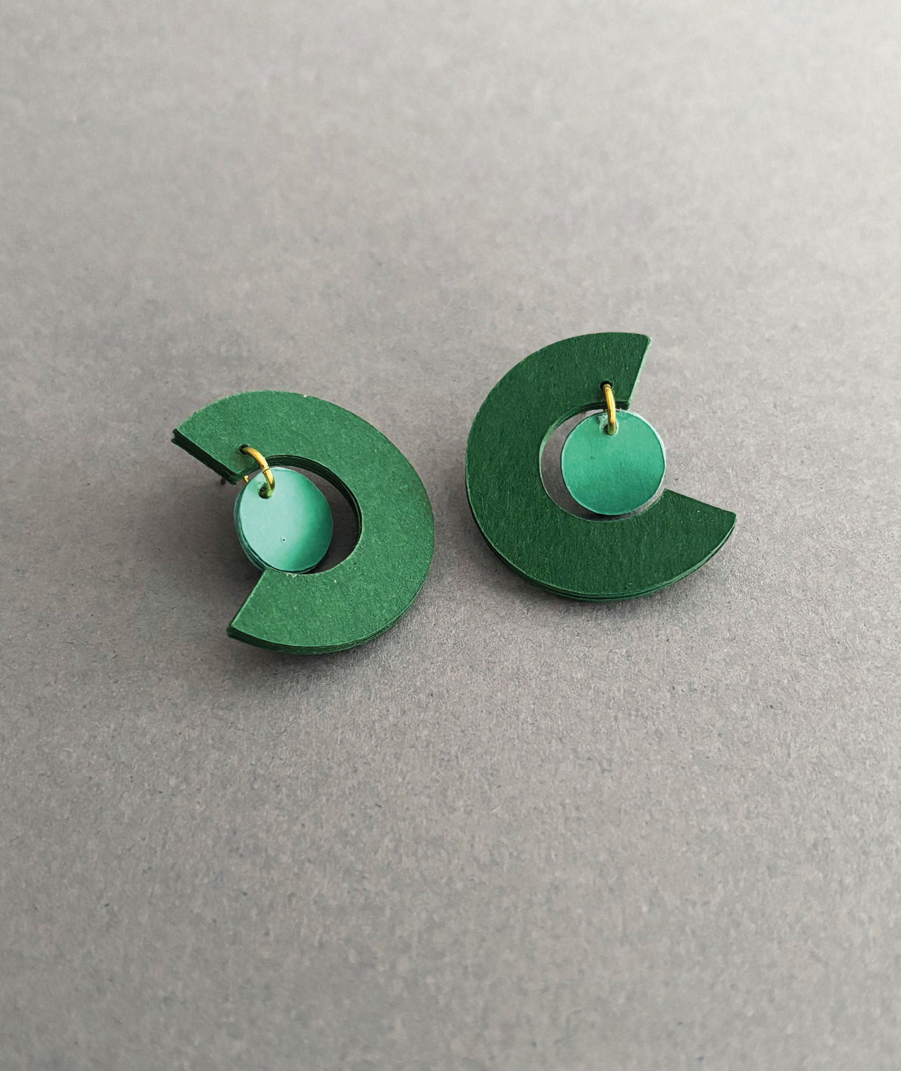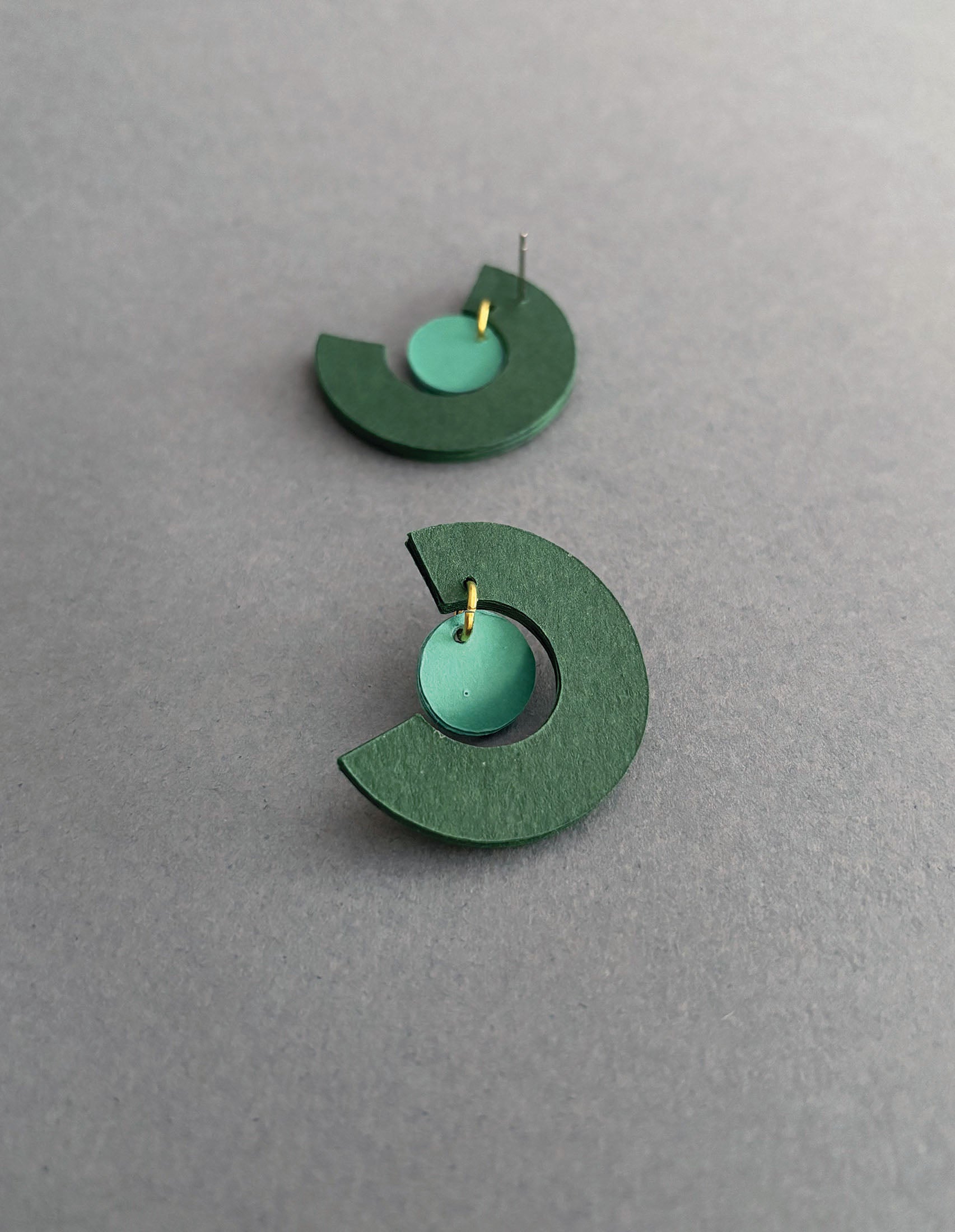 Mezzaluna, orecchini colorati in carta verde scuro e turchese